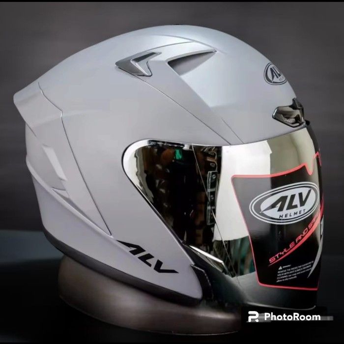 Helm alv ultron Solid Terbaru Visor silverns Warna stonr GREY DOP - BLACK GLOSY, XL BEST PRODUK