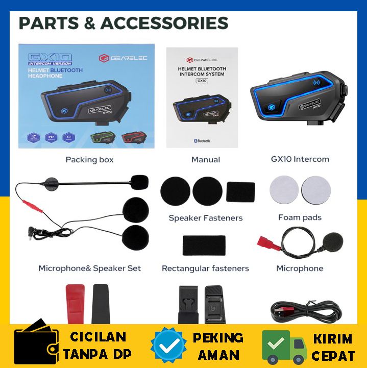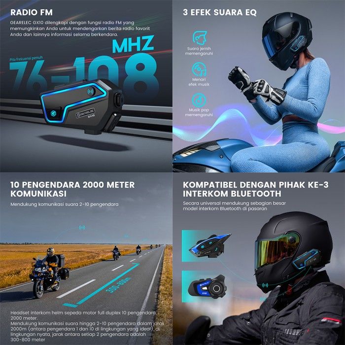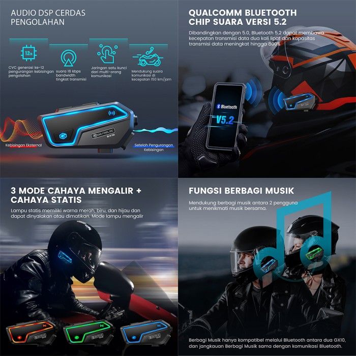 GX10 Helm Bluetooth 5.2 + EQ Efek Suara Intercom Headset 10 Orang - GX10 BEST PRODUK