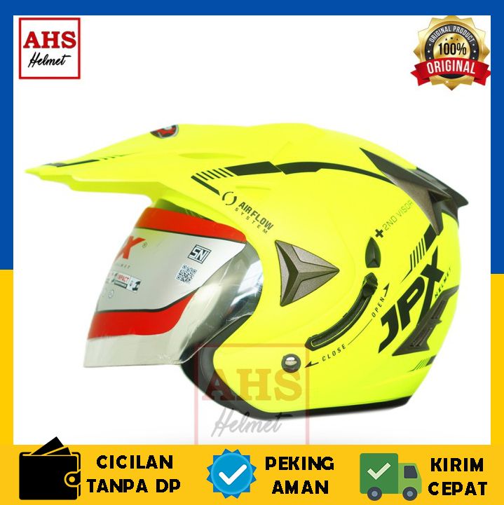 HELM JPX SUPERMOTO SEMI CROSS SOLID DOBEL VISOR STANDARD SNI - YELLOW FLUO, XL BEST PRODUK