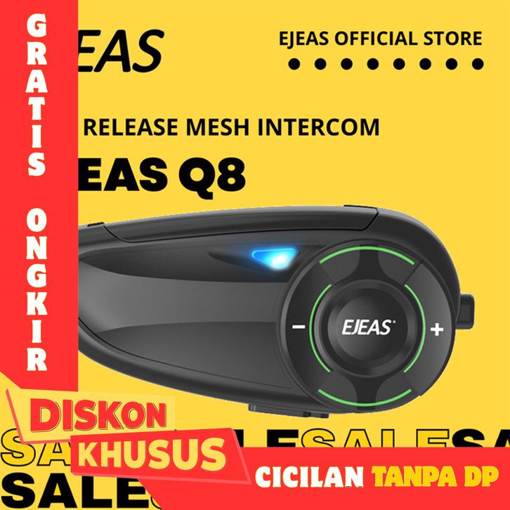 EJEAS Q8 Mesh Intercom Music Sharing Bluetooth Helm Alt MS8 Q7 V6 Pro - EJEAS Q8 BEST PRODUK