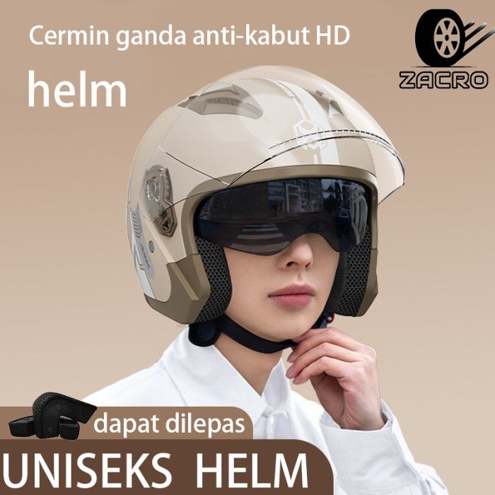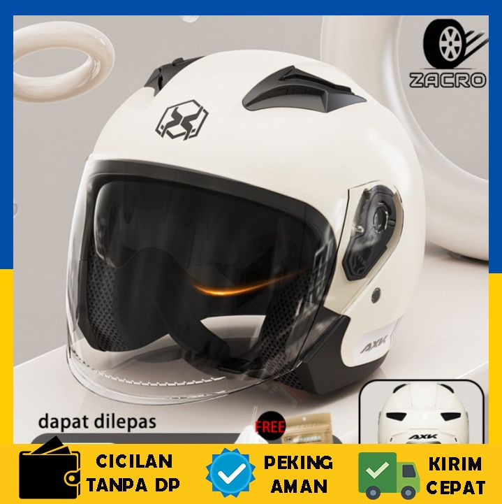 Helm Half Face ZACRO AXK Double Visor Pria dan Wanita BEST PRODUK