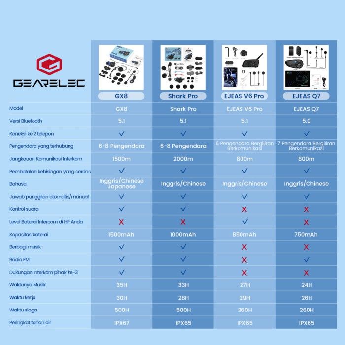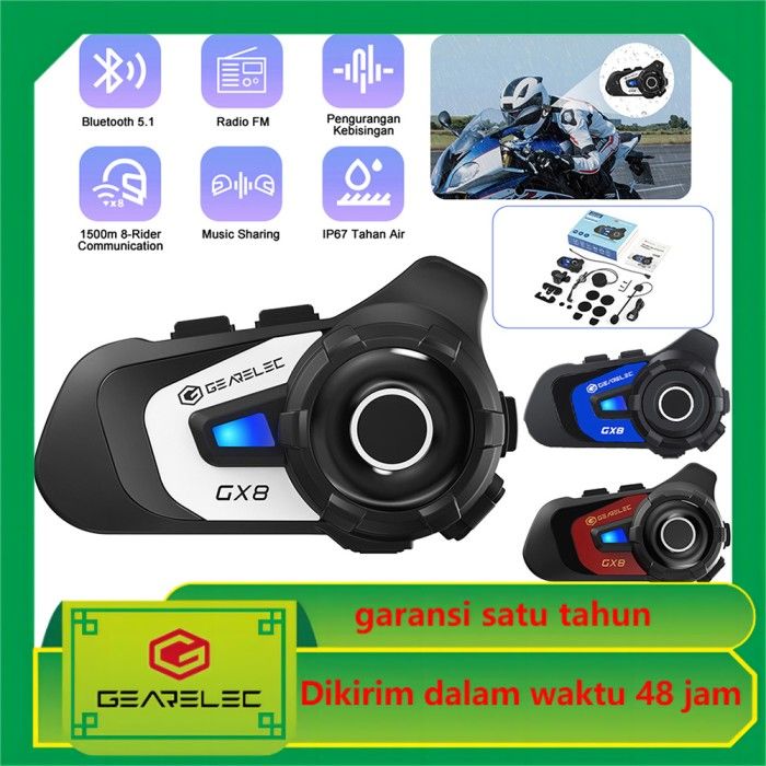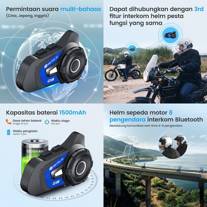 GX8 Motor Helm Bluetooth Intercom Headset 8-Rider Rentang 1500m BT 5.1 - GX8 BEST PRODUK