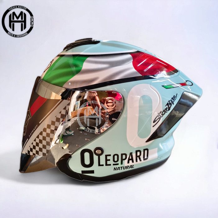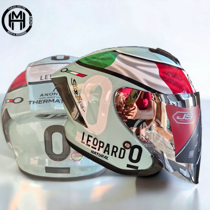 HELM JS ARMOR MOTIF LEOPARD|HALF FACE - grey dof polos, All Size BEST PRODUK