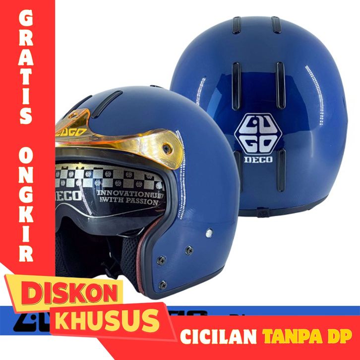 Helm Dewasa Klasik LUGO Deco Polos Standar SNI, Visor Unik, Interior Nyaman - Biru, M BEST PRODUK