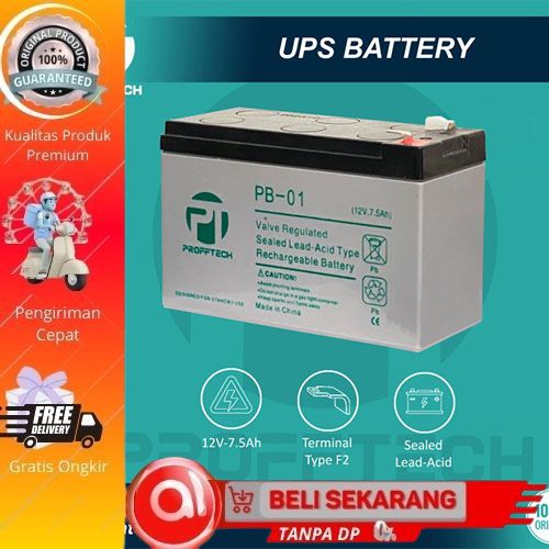 ProffTech Battery/Aki Kering UPS. 12 V & 7.5 Ah. Garansi 1 Thn. PROMO TERBARU