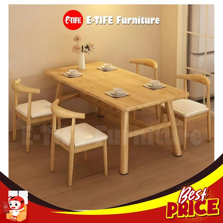 E-TIFE Meja Makan / Meja Makan Set 4 Kursi / Meja Makan Minimalis / Meja Makan Murah - Kayu 120CM