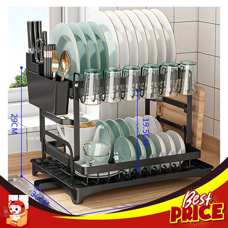 Rak piring dapur stainless steel penyimpanan rak pengering piring rak - Hitam
