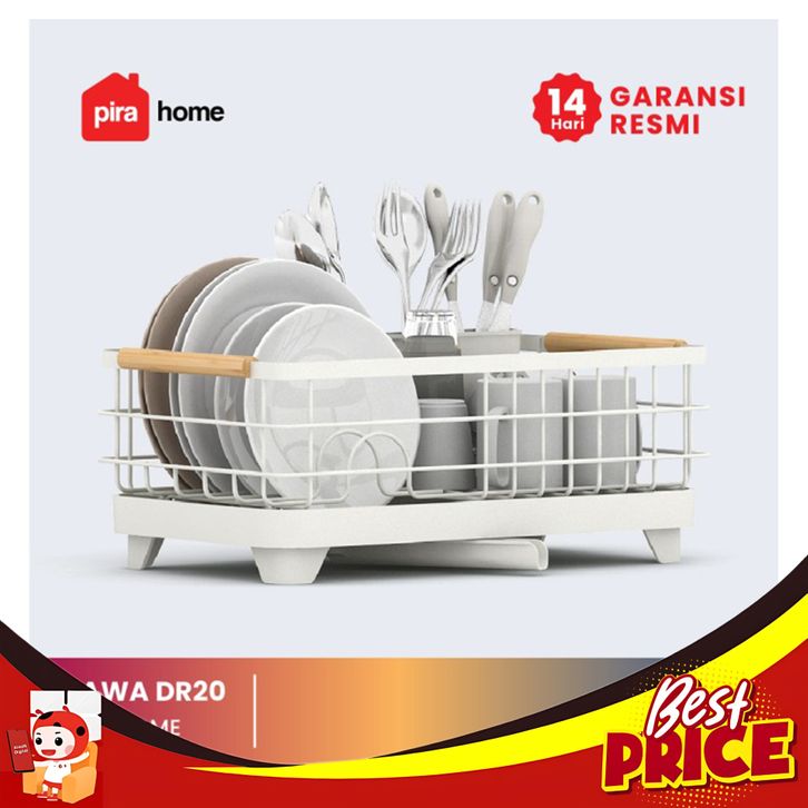 PIRA HOME - KAWA DR20 Rak Piring / Rak Pengering Piring dengan Pipa Pembuang Air - White