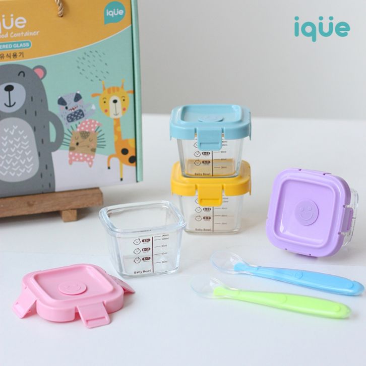 𝐈𝐐𝐔𝐄 Tempat Mpasi Kaca Hampers Baby Gift Set Wadah Mpasi Kaca Kado Lahiran Bayi + Sendok Mpasi 6 in 1 & 4 in 1 Set