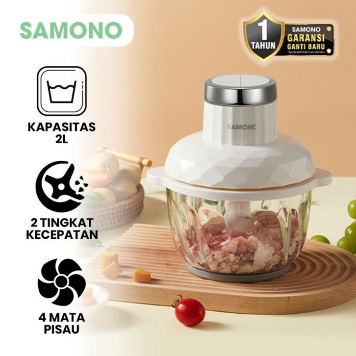 Food Chopper Kaca 2L Food Processor Multifungsi Penggiling Daging 2 Speed 300W