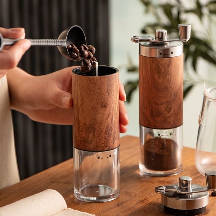 [Mall]Alat Penggiling Kopi Manual Coffee Grinder Adjustable - Brown Kayu Asthetic Gels Kaca PROMO TERMURAH - pkm03