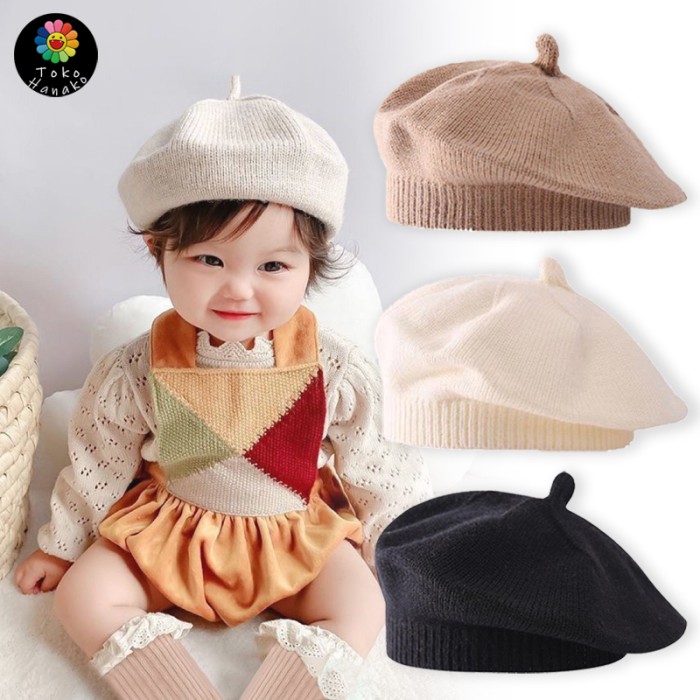 2-8 THN | TOPI BERET BAYI ANAK RAJUT STYLE KOREA WOL ANAK-PAINTER AUTUMN WINTER BARET BERRET HAT POLOS FASHION TOPI - KHAKI