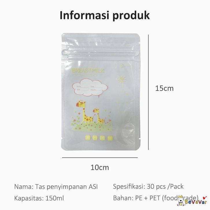 Kantong ASI Plastik ASI 150ml isi 30pcs Breastmilk Storage Bag Doble Zipper BPA Free