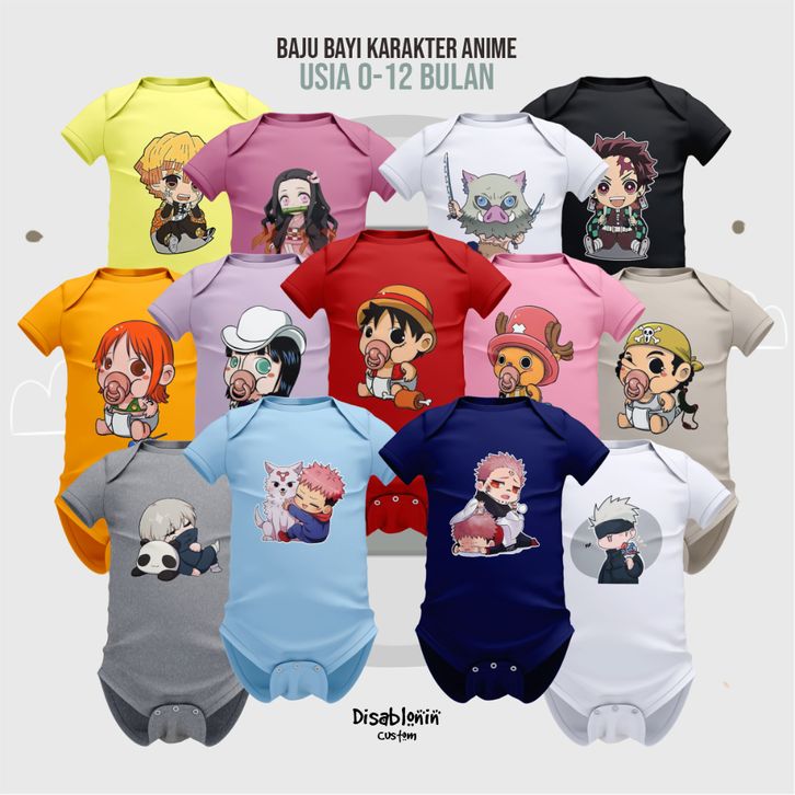 JUMPER BAJU BAYI Karakter Anime One Piece Kimetsu JUMPSUIT BABY CUSTOM USIA NEWBORN 0 - 12 Bulan