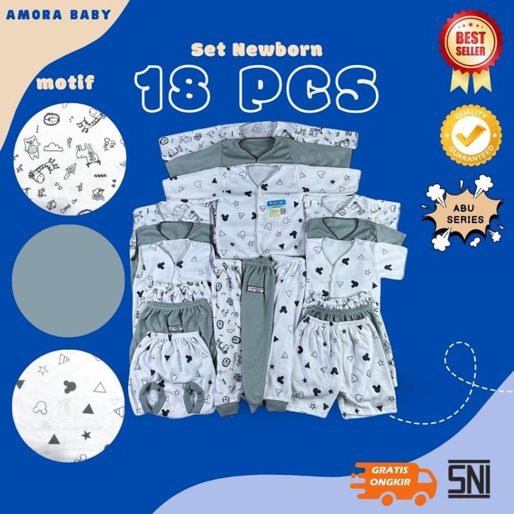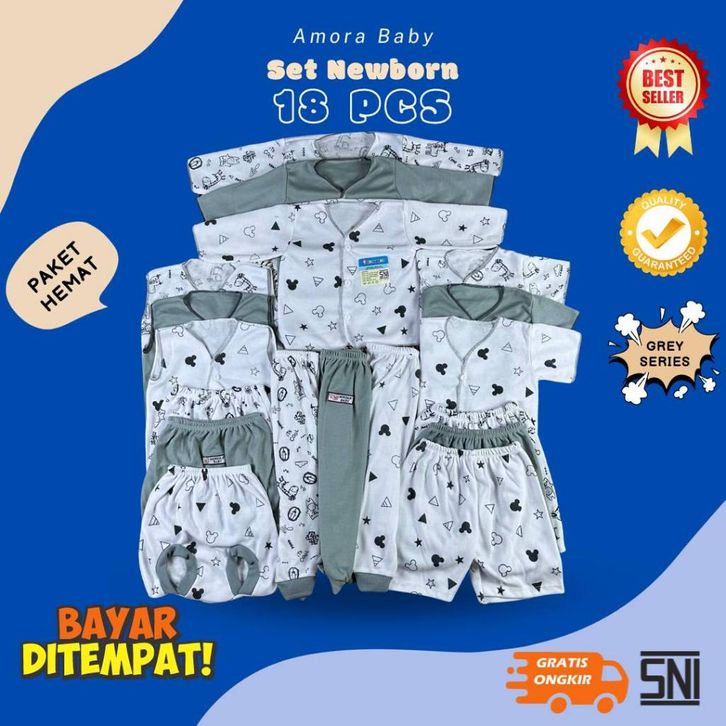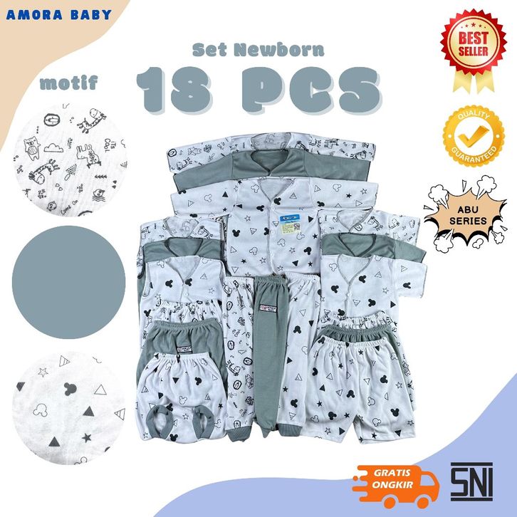 18 Pcs Seri Abu Baju Bayi Celana Bayi Setelan Bayi Baju Bayi Newborn Baju Bayi Baru Lahir Atasan Bayi Baju Bayi Perempua