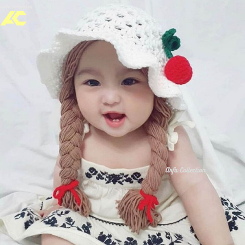 TOPI KUPLUK RENDA BAYI KEPANG RAMBUT / BABY HAT WIG / KUPLUK WIG - BUNGA MERAH