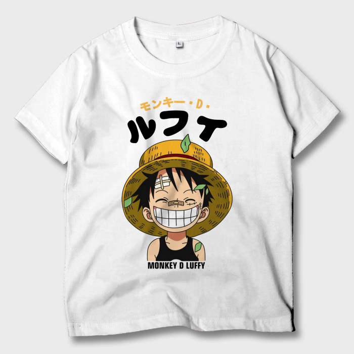 BAJU KAOS ANAK GAMBAR ONE PIECE MONKEY D LUFFY ANIME ATASAN OP-01 A - KAOS POLOS, XS