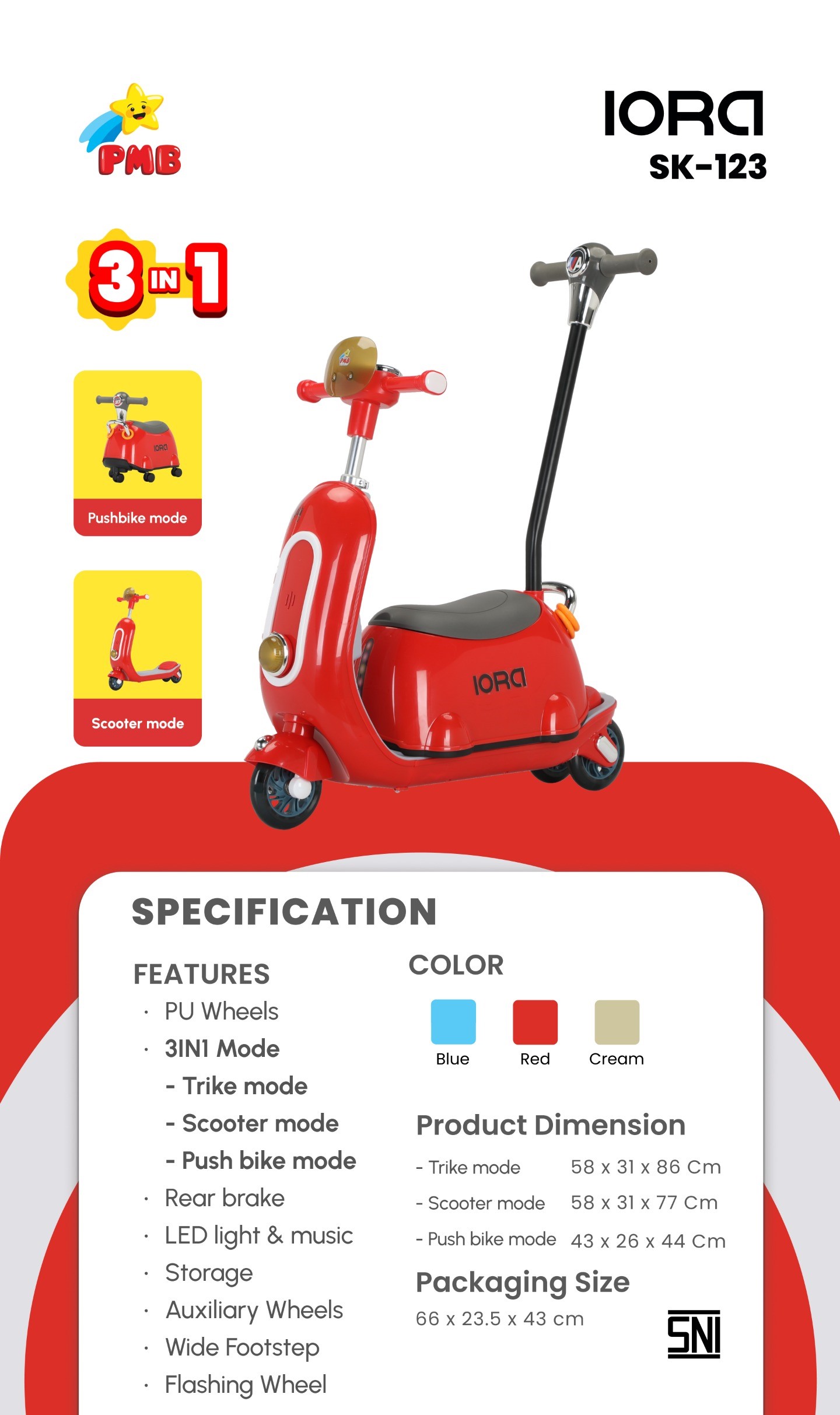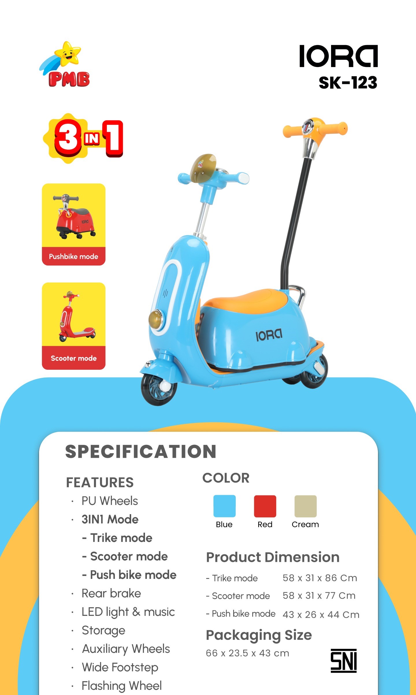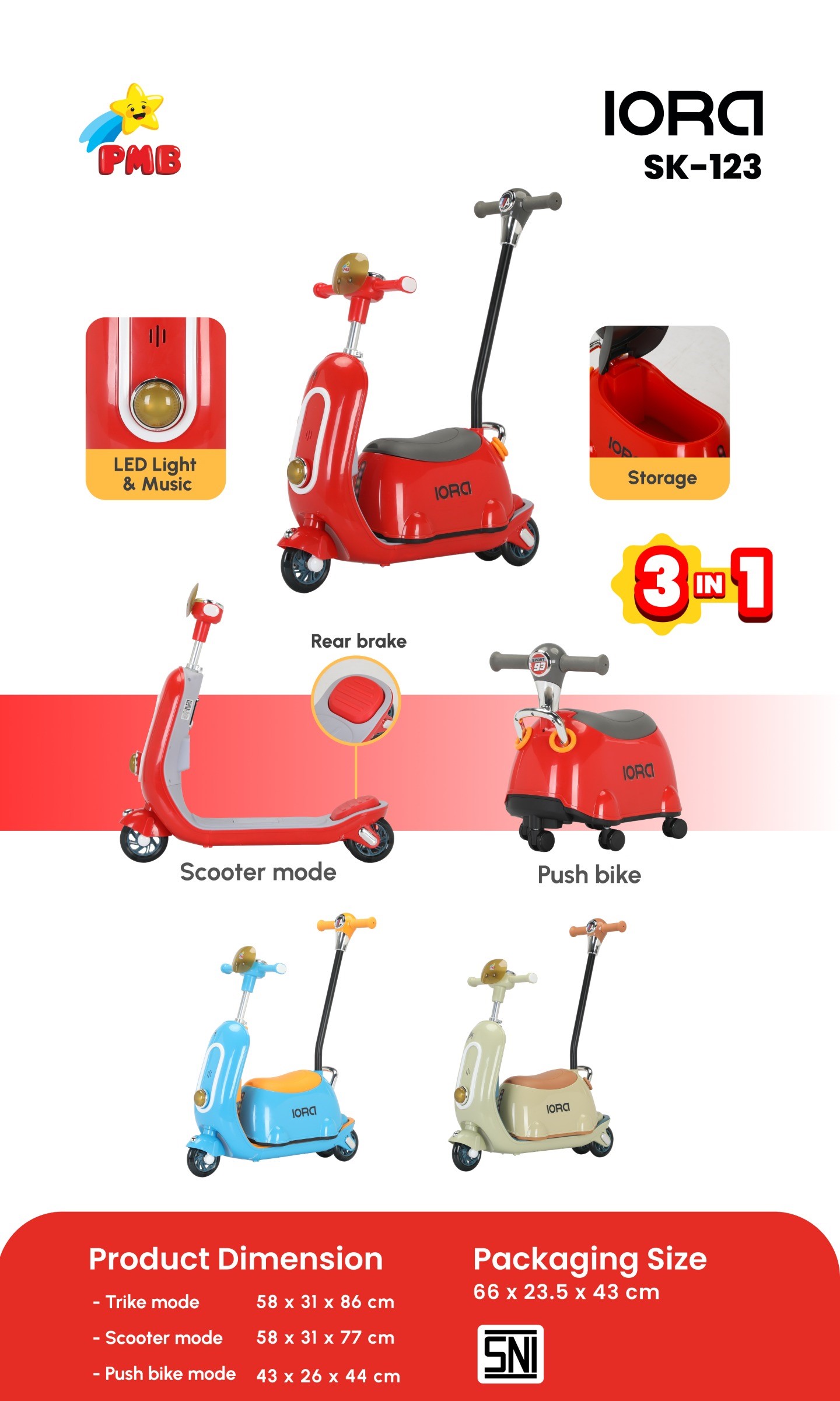 SCOOTER ANAK 3IN1 SCOOTER IORA SK 123 SK123 (color box) Led light musik PMB TOYS