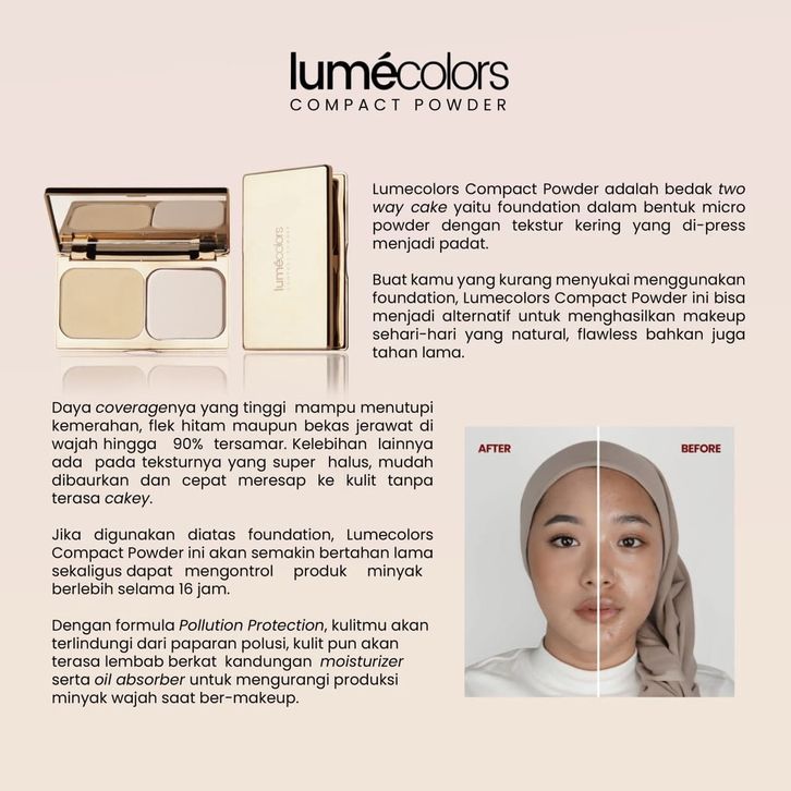 Lumecolors Compact Powder Sand Two Way Cake with Oil Control Tahan 16 Jam Bedak Padat Lumecolor