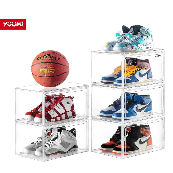Akrilik Transparan Kotak Display - Kotak Sepatu Susun Tertutup Serbaguna, Tahan Air & Anti Lembab untuk Sepatu, Buku, Ac