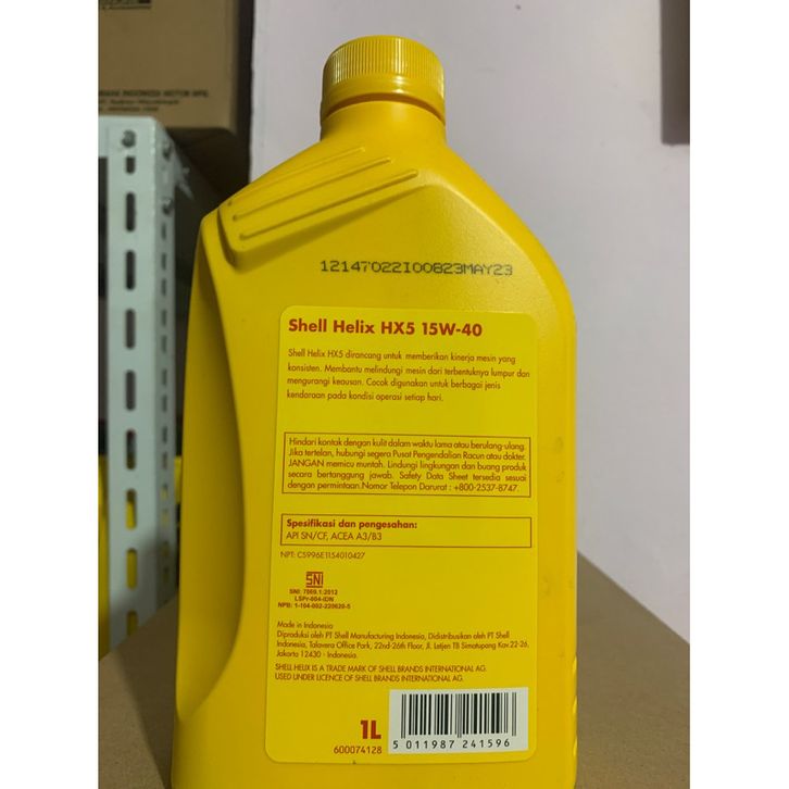 OLI SHELL HELIX HX5 SAE 15W-40 1 LITER SN/CF Oli Shell Mobil HX5 Oli Shell XH5 Motor 1Liter Orinal