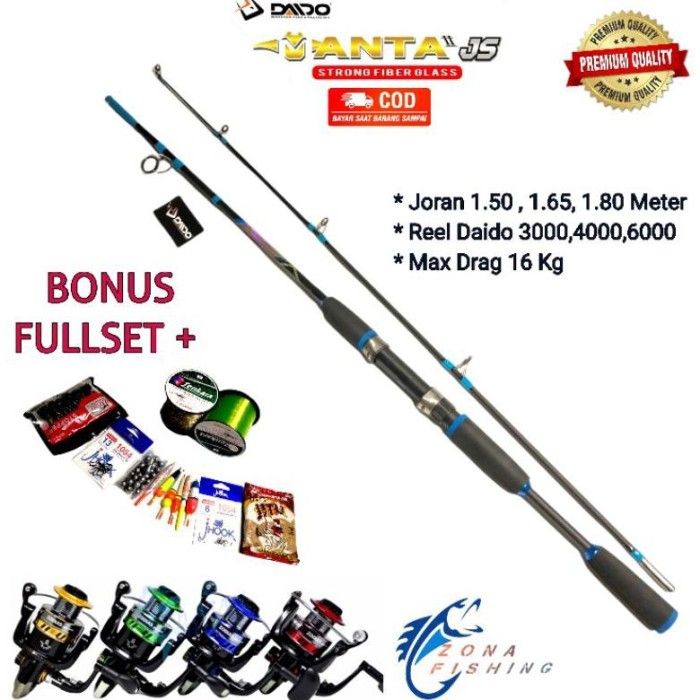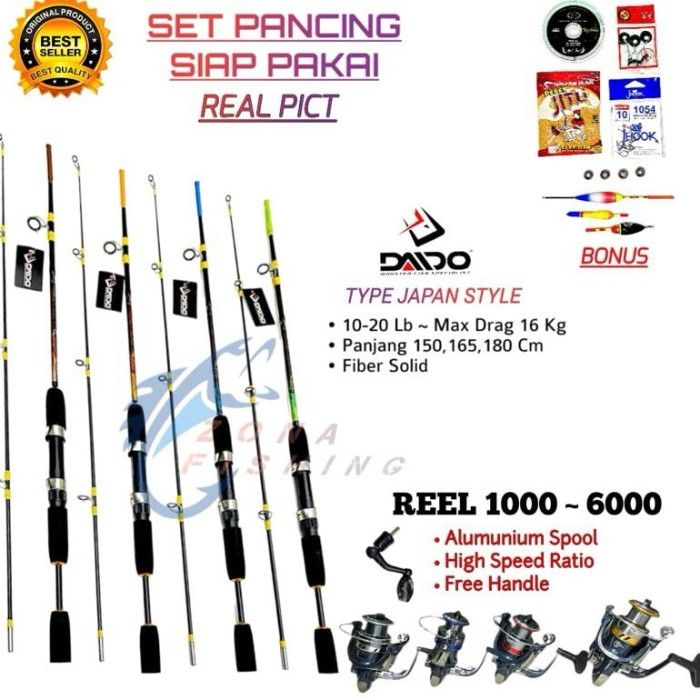 set alat pancing Set Pancing Joran Laut Daido 16kg Reel Besi 3000 4000 6000 Tipe Japan Style PAKET KOMPLIT - Set JS 150