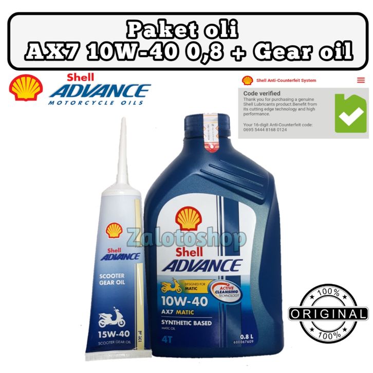 Paket oli matic Shell advance AX7SC 10W-40 0,8L + gear oil