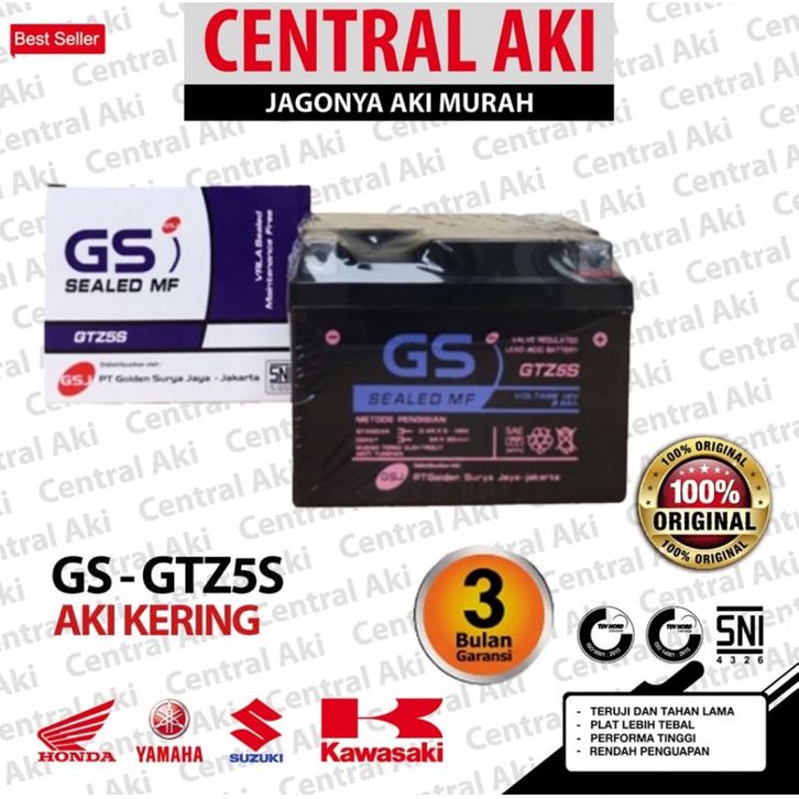 Aki Motor GTZ5S 5AH Aki Kering Yamaha Mio Soul Mio Soul GT Mio M3 Mio J Mio GT Mio Z Fino Xeon X Ride Byson Vixion