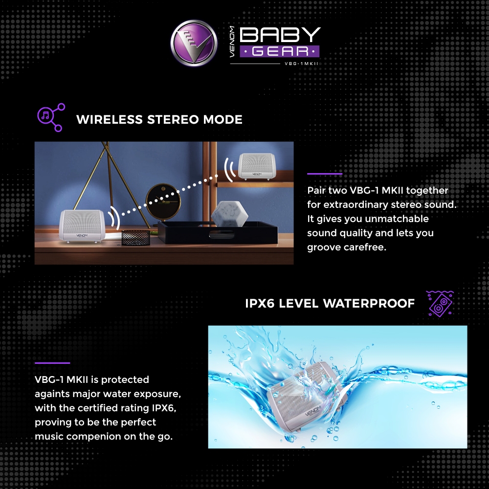 VENOM BABY GEAR VBG-1 MKII SPEAKER BLUETOOTH PORTABLE DENGAN MODE STEREO