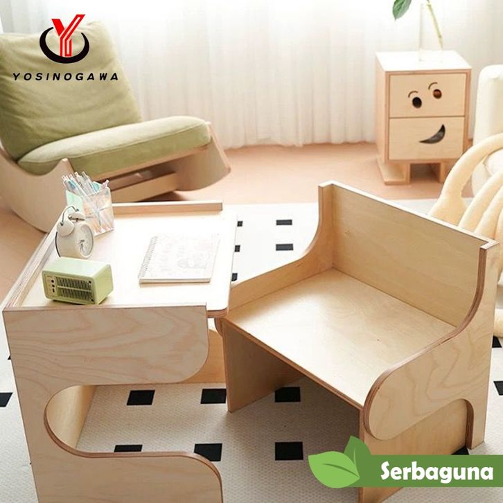 Meja Tulis Anak Berbentuk U dan Set Kursi Bayi Meja Belajar Buatan Tangan Multifungsi Meja Kayu Solid TK