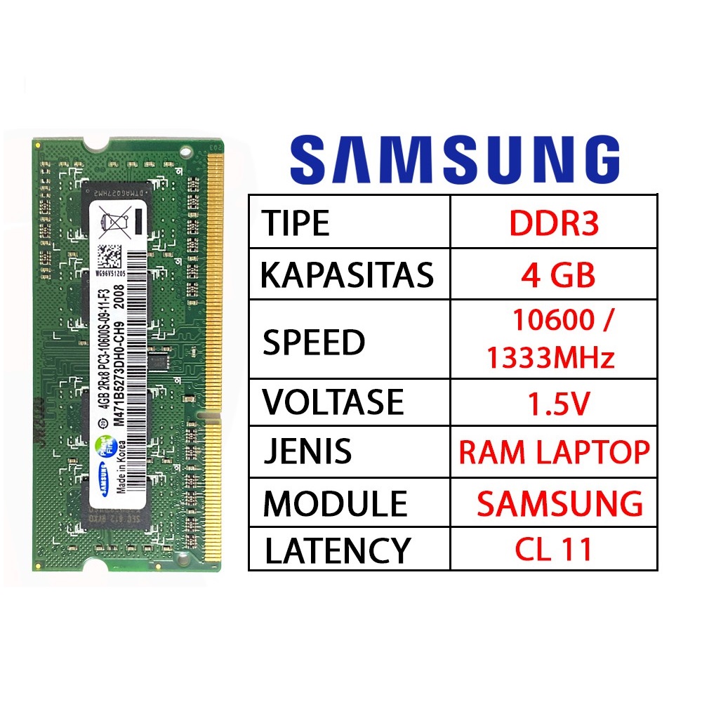 RAM LAPTOP SAMSUNG DDR3 4GB 10600/1333MHz ORIGINAL RAM SODIMM 1.5v 4GB