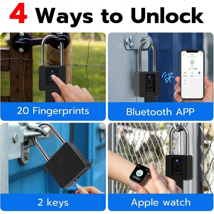 Gembok Anti Maling Gembok Sidik Jari Balok Panjang Gembok Sidik Jari Tahan Air 20 Sidik Jari