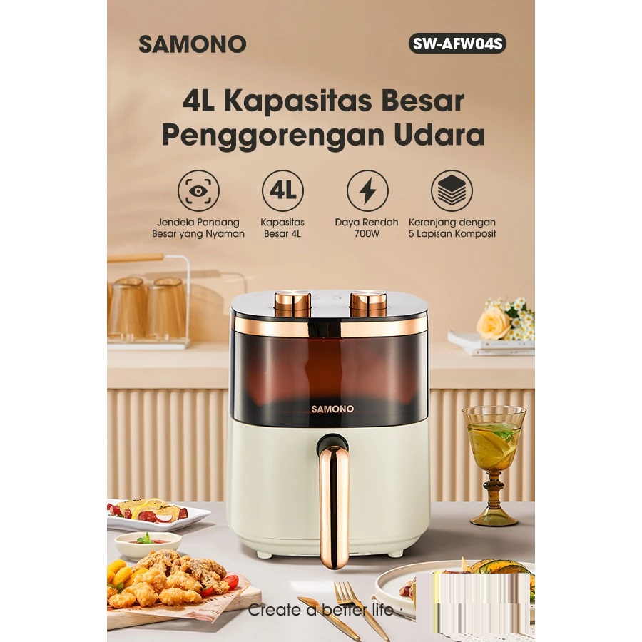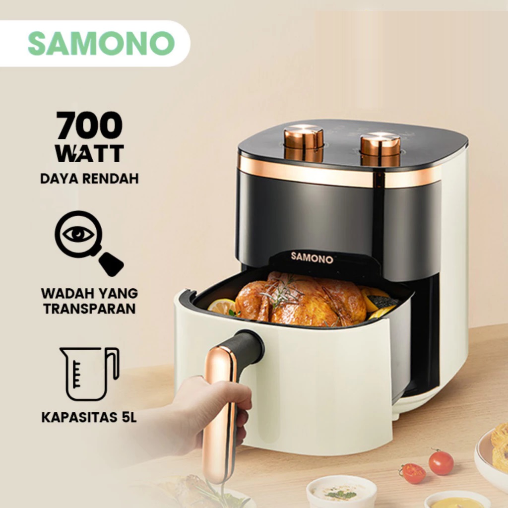 Samono Aesthetic Transparan Air Fryer 4 Liter 700 Watt SNI Hemat Listrik Mesin Menggoreng Tanpa Minyak