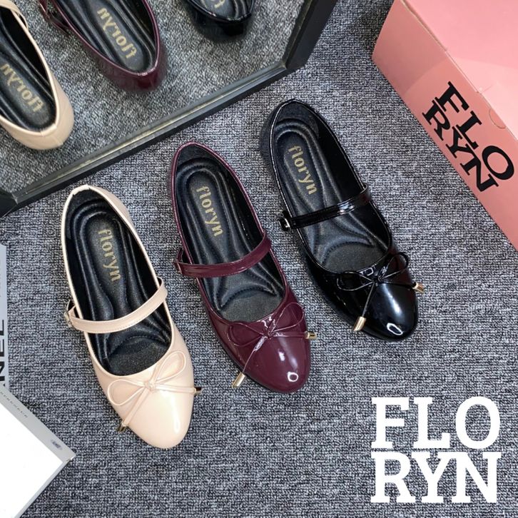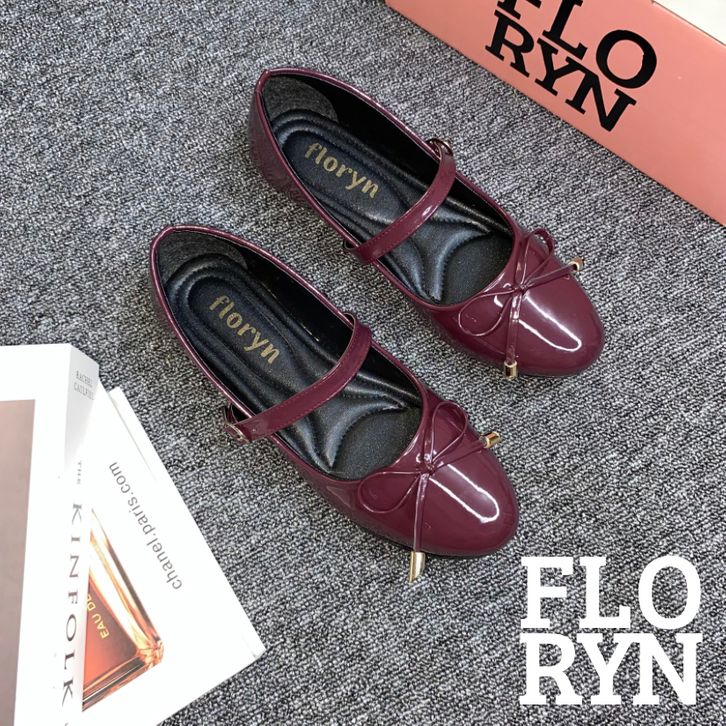 Floryn Shoes - Flatshoes Anna Burgundy Ballerina Premium Wanita Tali Pita Datar Basic Simpel Casual