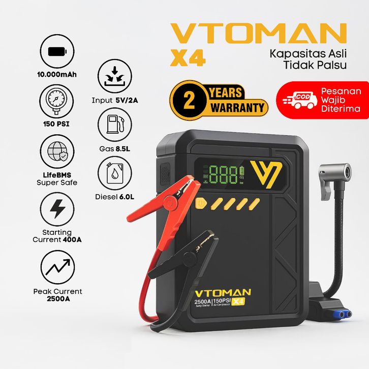 VTOMAN X4 Jumper Aki Mobil 10000mAh Pompa Ban Elektrik Portable Car Jump Starter