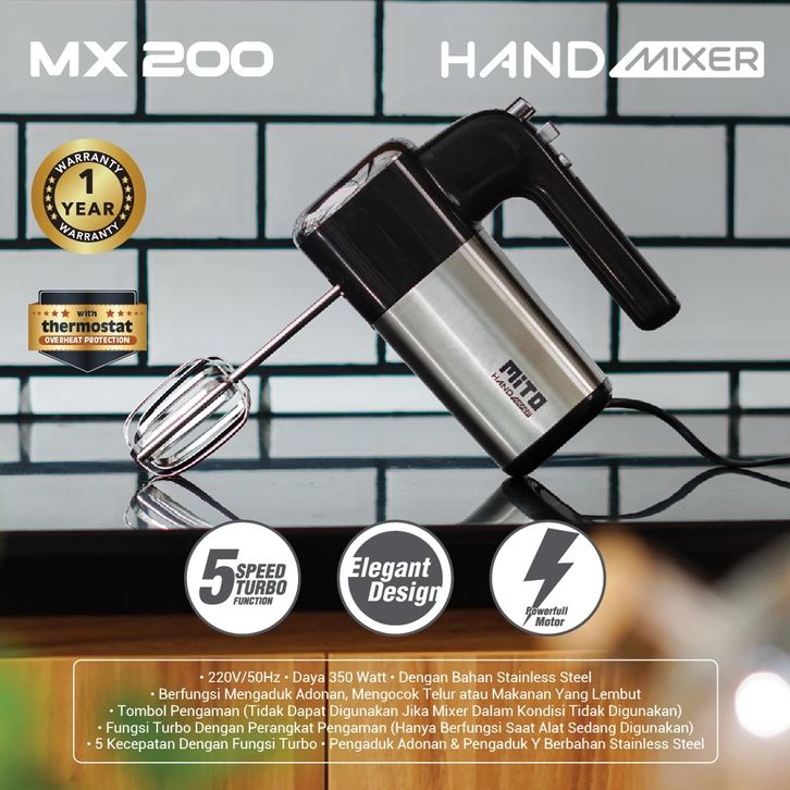 MITO Hand Mixer MX200 Pengaduk Adonan Kue 5 Kecepatan Turbo / mixer ashley / mixer philips / mixer miyako