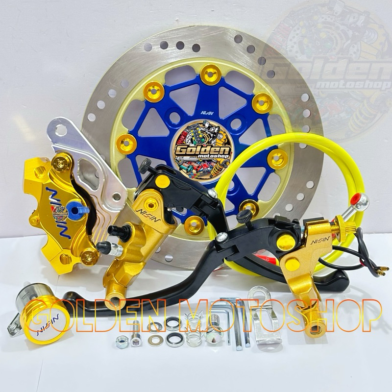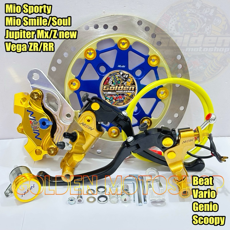 Paket Pengereman Mio,Fino,Xeon,Vario ,Beat,Scoopy,Genio disc lubang cakram 4+ Kaliper + Breket