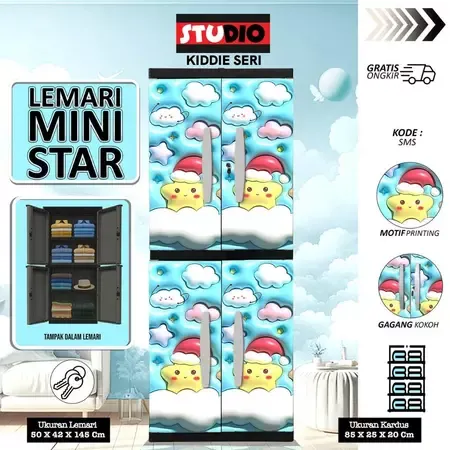 Lemari Pakaian Anak STUDIO | Lemari pakaian Anak | Lemari Plastik 2p | Lemari Anak LA2P | Rak Baju Plastik
