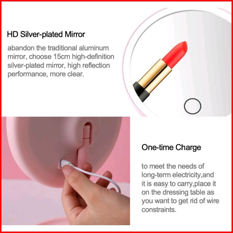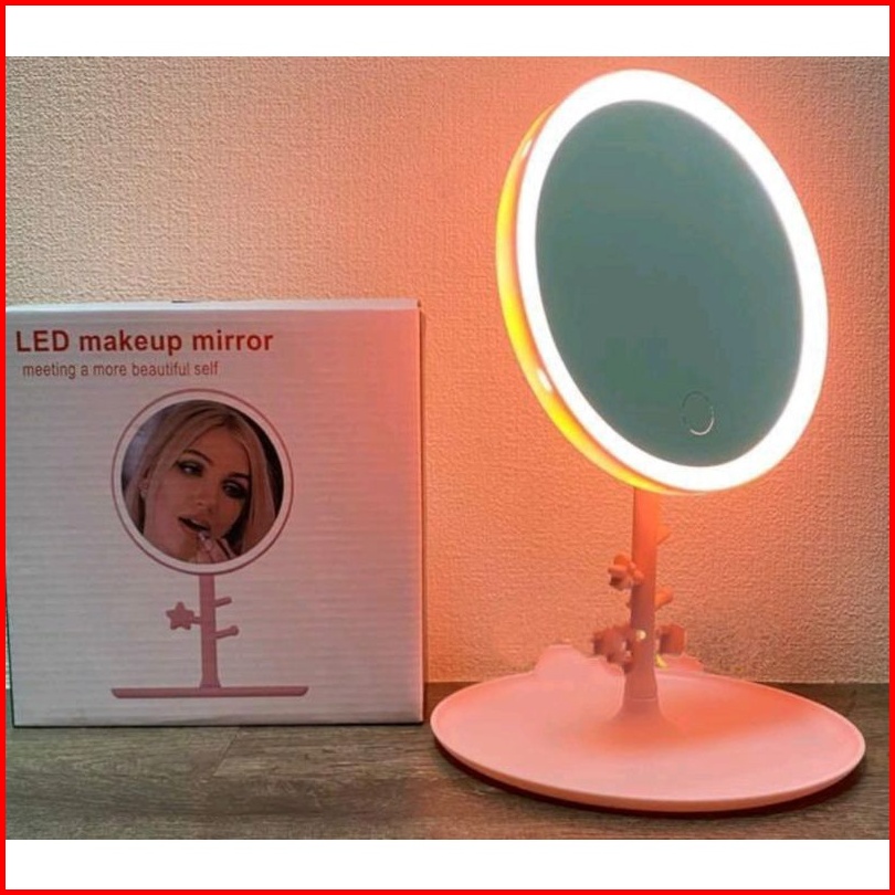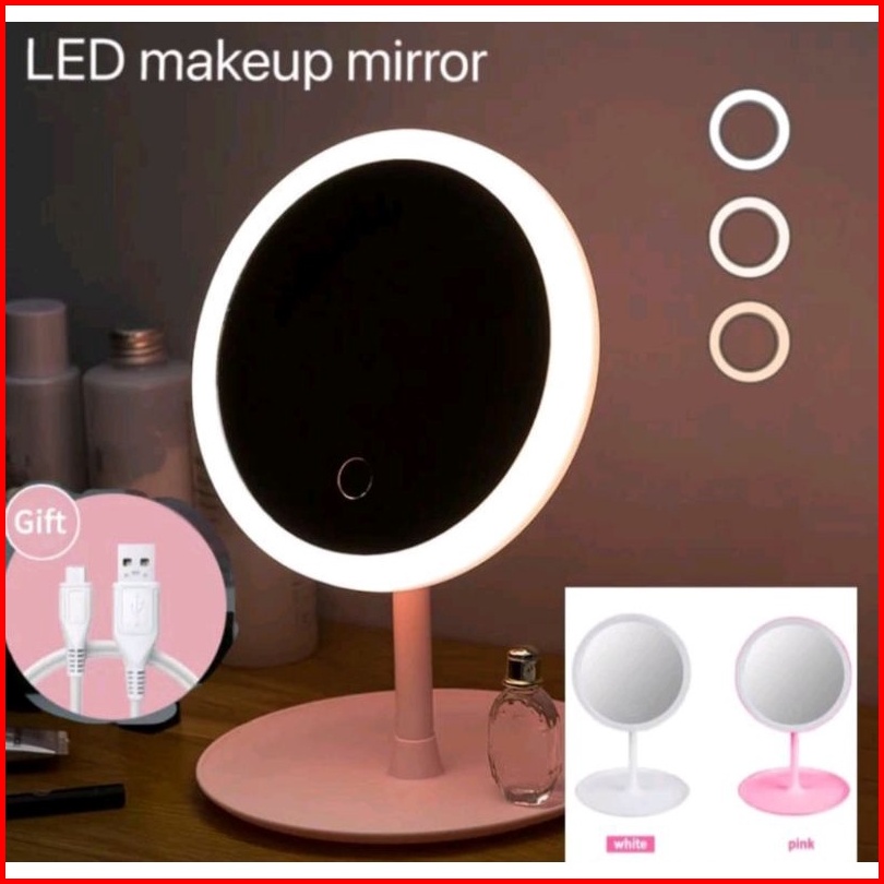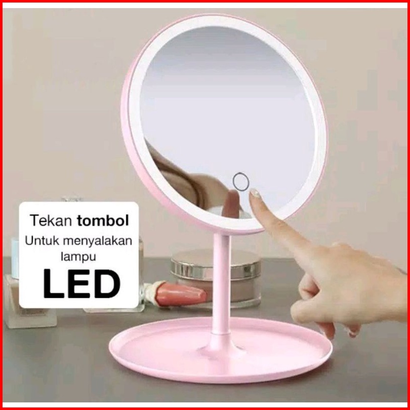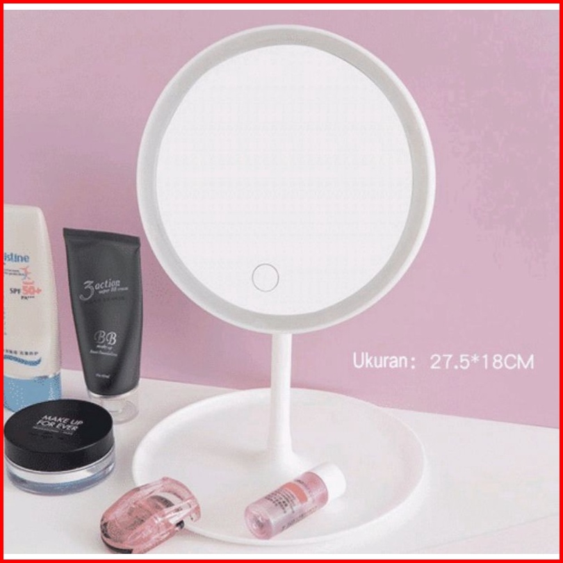 Cermin Rias Led Mirror Bulat Tombol Touch Screen Kaca