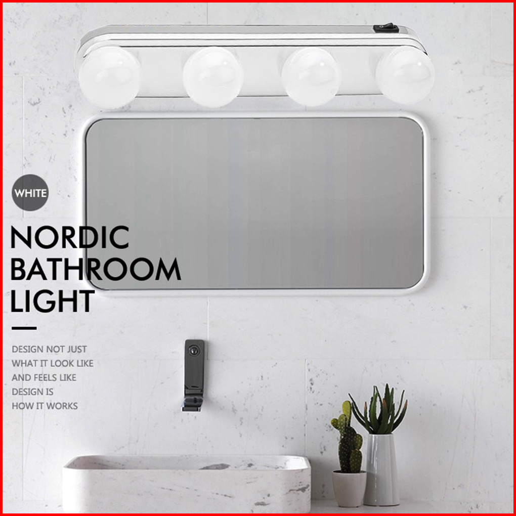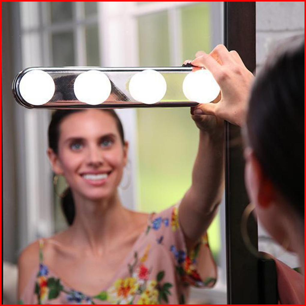 Studio Glow Lampu Tempel 4 Bohlam Make Up Meja Rias Cermin Kaca Super Bright Cool White Portable