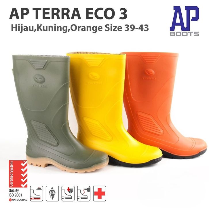 Sepatu Boot Tinggi TERRA ECO 3 AP BOOTS Kuning Hijau Orange - Anti Slip Lentur Lokal Karet TERLARIS