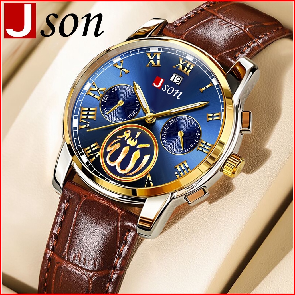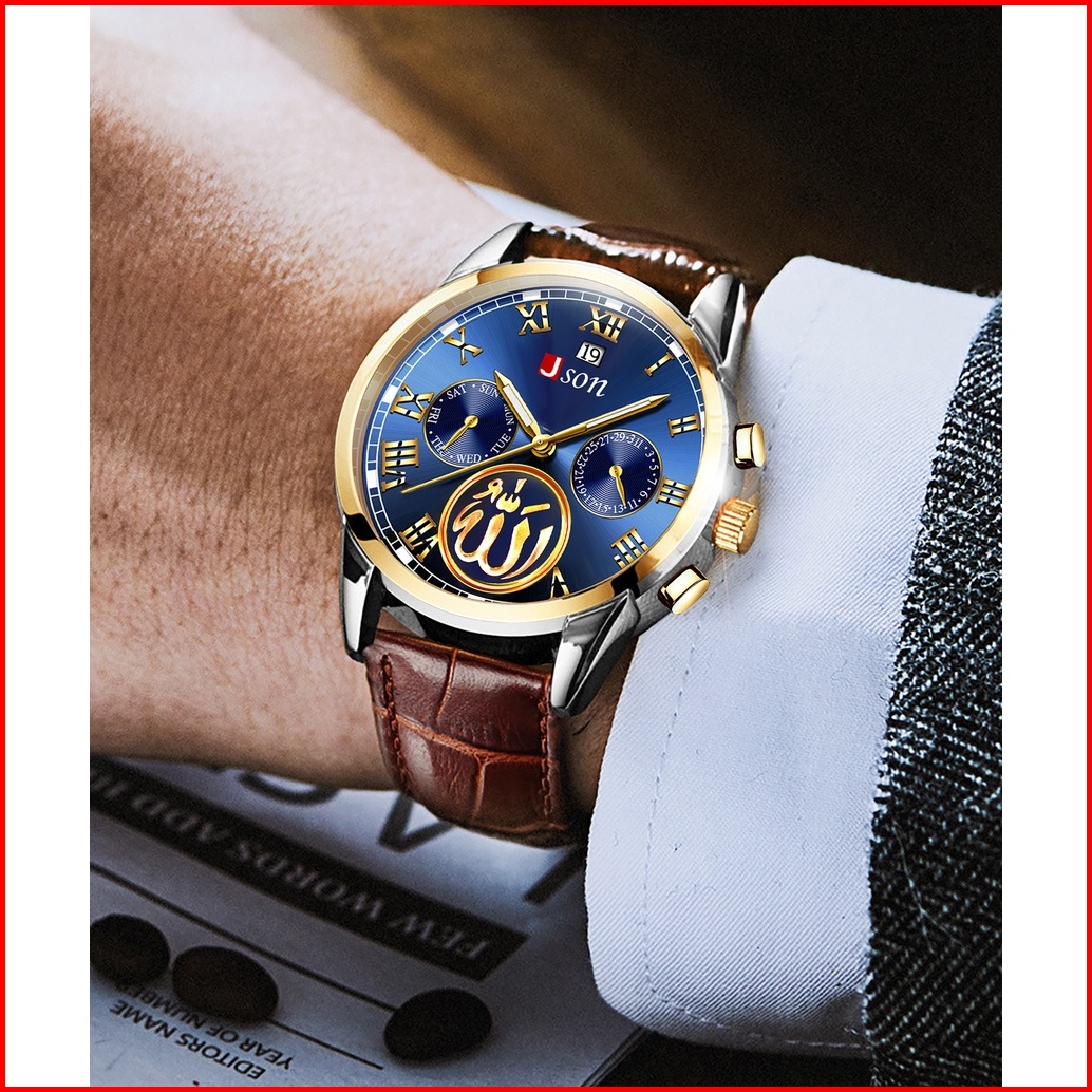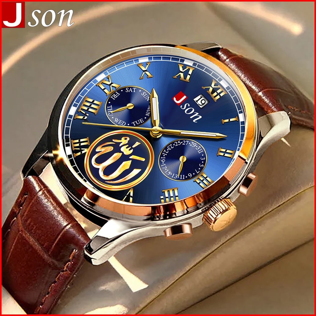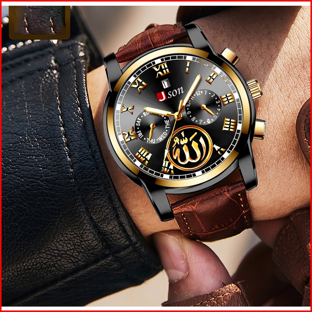 Jam Tangan Pria Json Tali Kulit Terbaru 2023 Tahan Air Anti Baret Kuat Motif Arab
