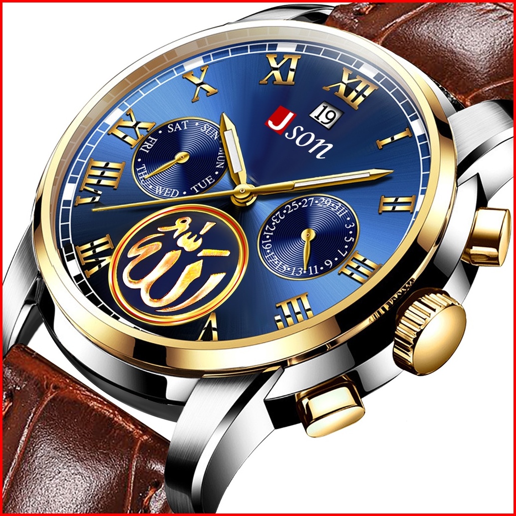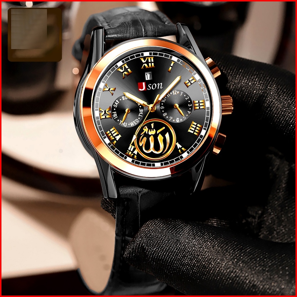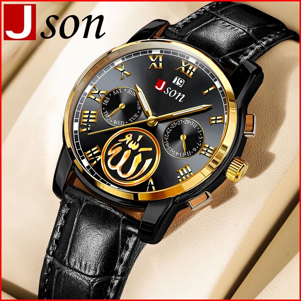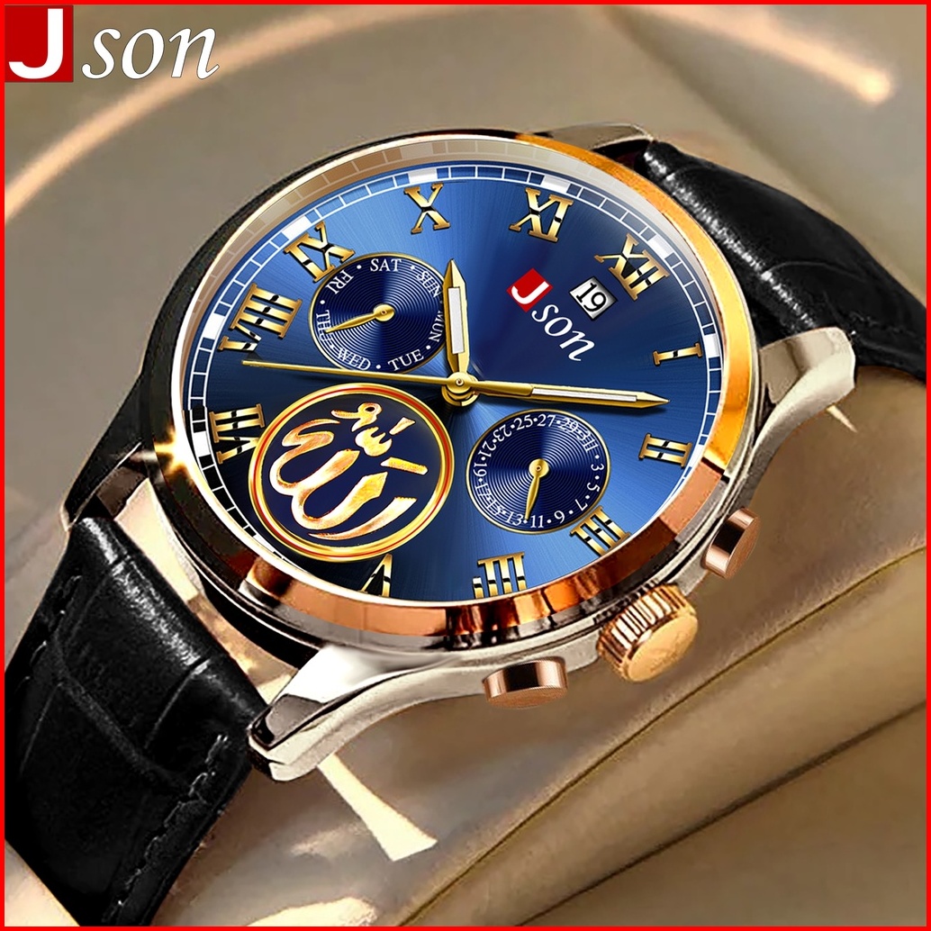 Jam Tangan Pria Json Tali Kulit Terbaru 2023 Tahan Air Anti Baret Kuat Motif Arab