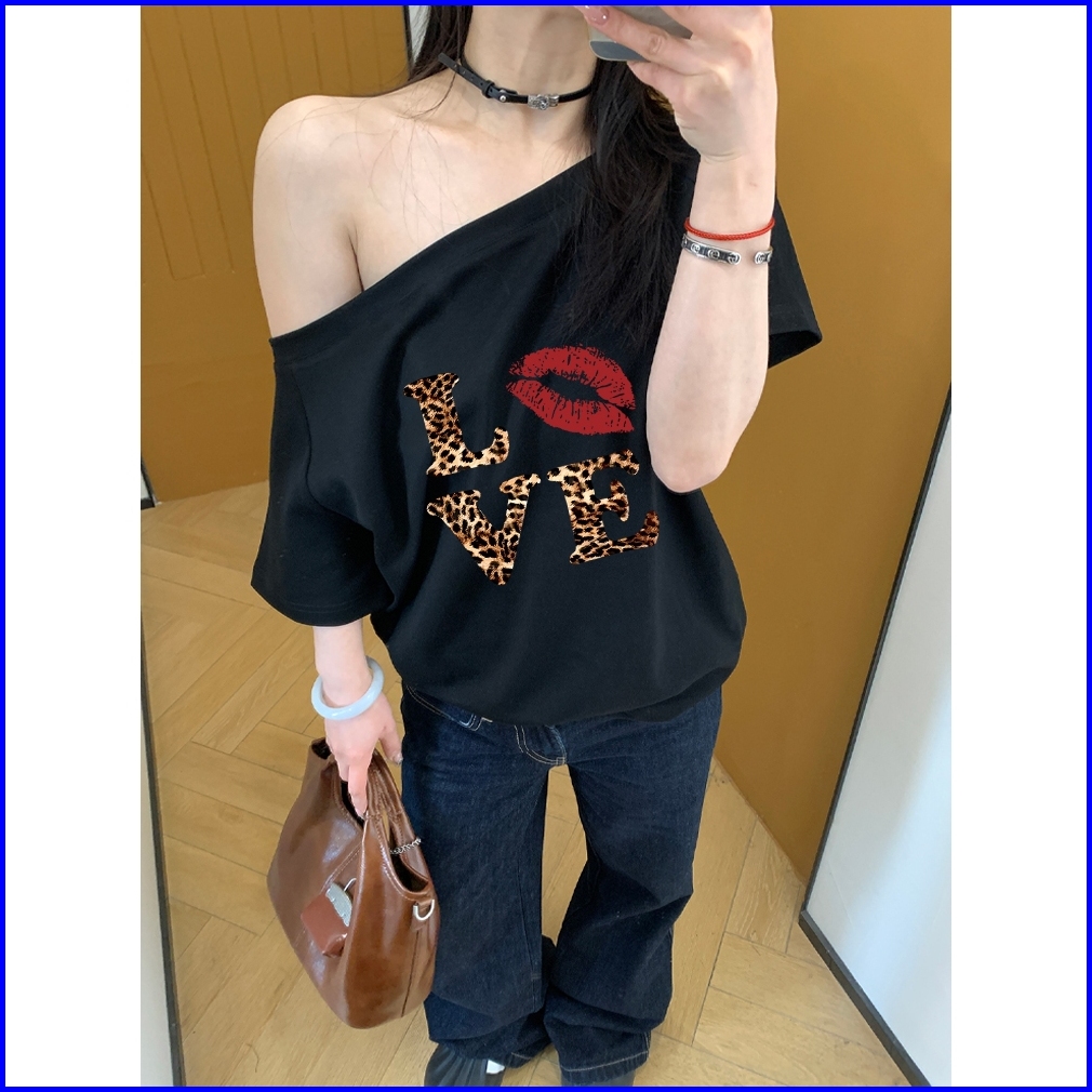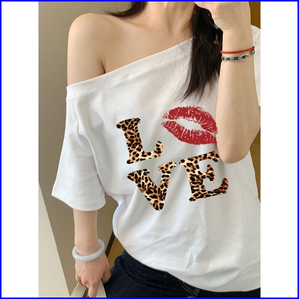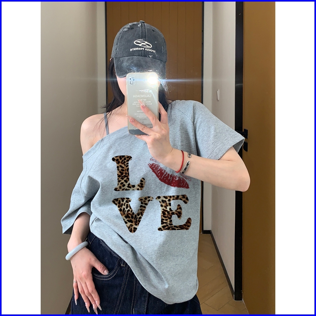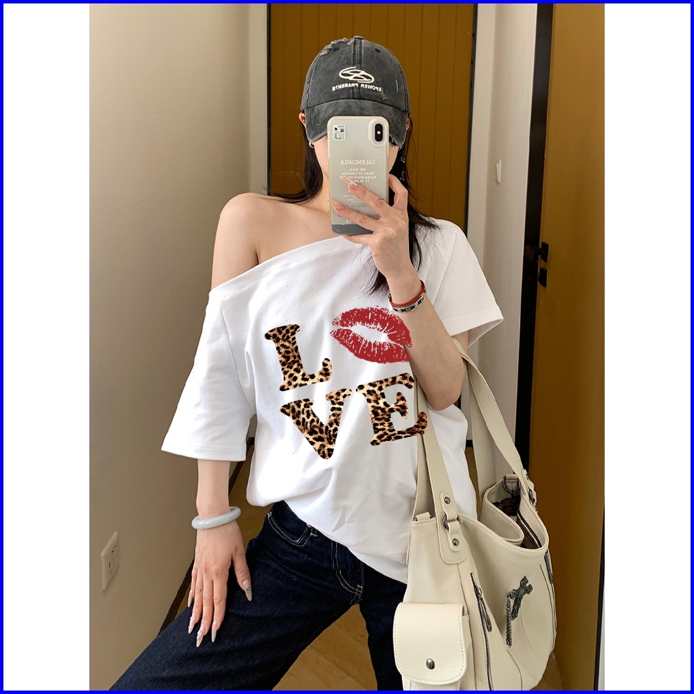 2toyoung Vintage Amerika Love Atasan Wanita Kekinian Tshirt Y2k Asymmetrical Offshoulder Top Ahs Streetwear Stockholm Vi
