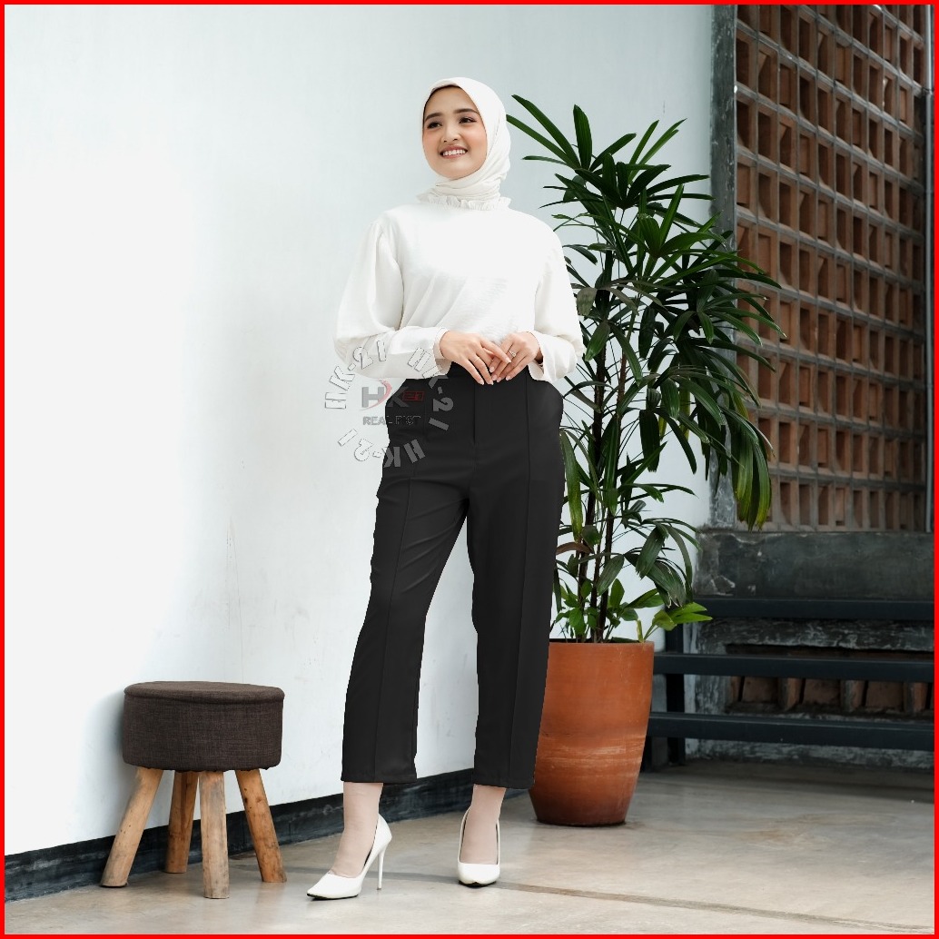 Hk-21 Yuta List Baggy Kasual Pants - Celana Panjang Kerja Wanita Allsize Fit To L
