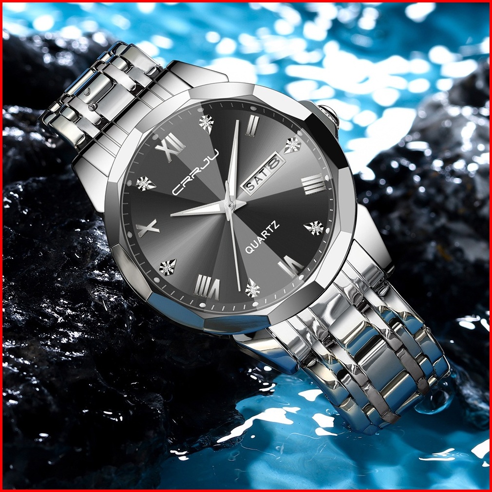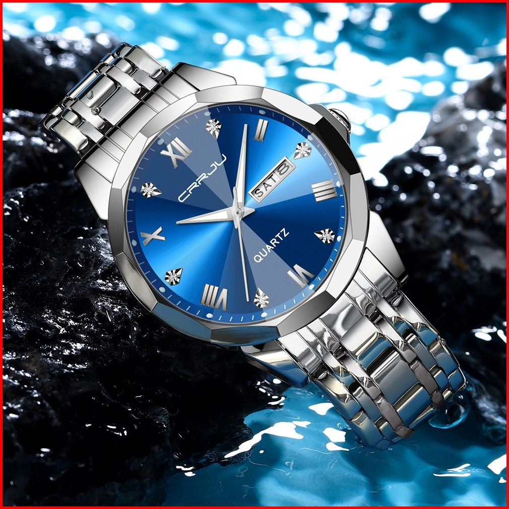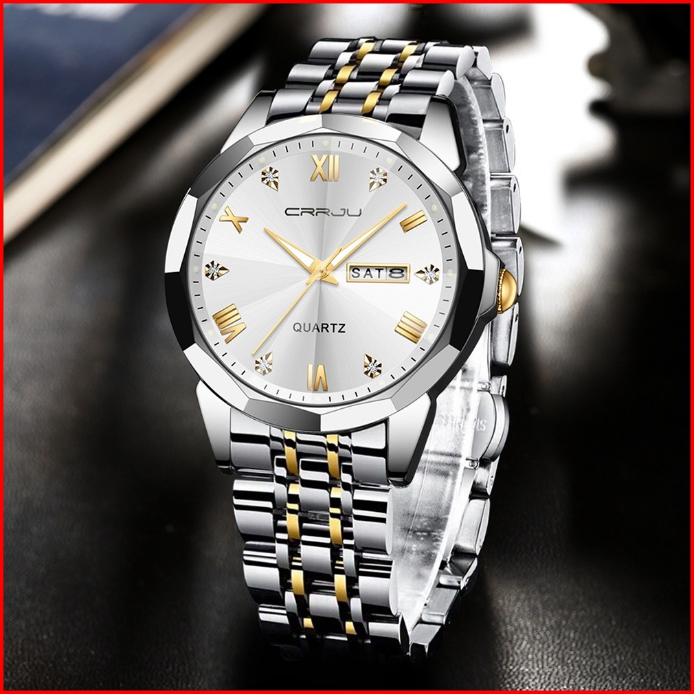 Crrju Jam Tangan Pria Anti Air Original Rantai Keren Terbaru Mewah 2024 Putih Luxury Stainless Steel Watch Men