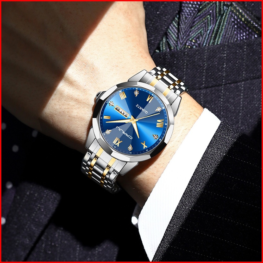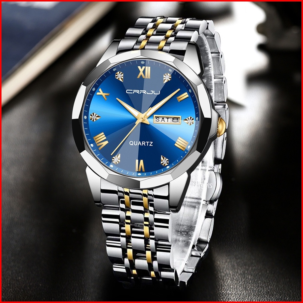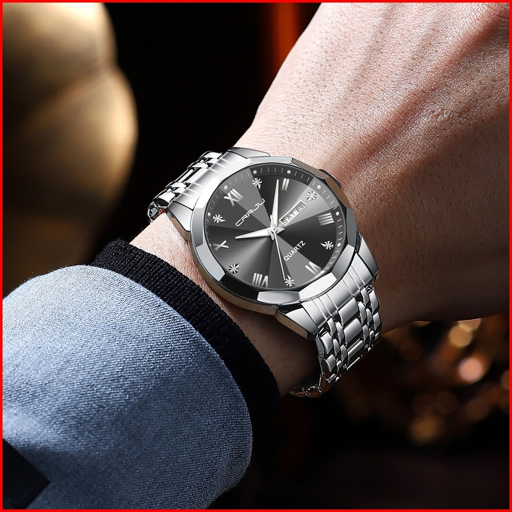 Crrju Jam Tangan Pria Anti Air Original Rantai Keren Terbaru Mewah 2024 Putih Luxury Stainless Steel Watch Men
