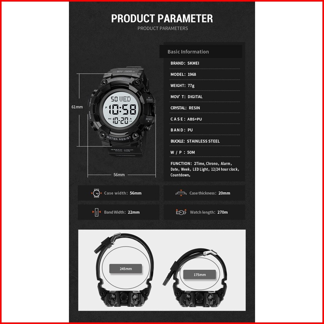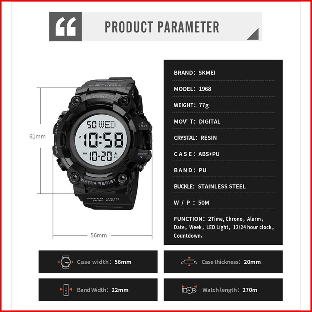 Skmei 1968 Jam Tangan Pria Digital Sport Watch Anti Air 5 Bar