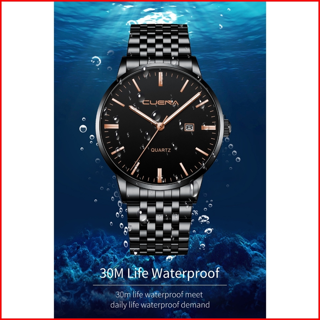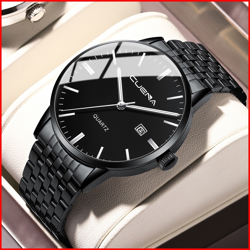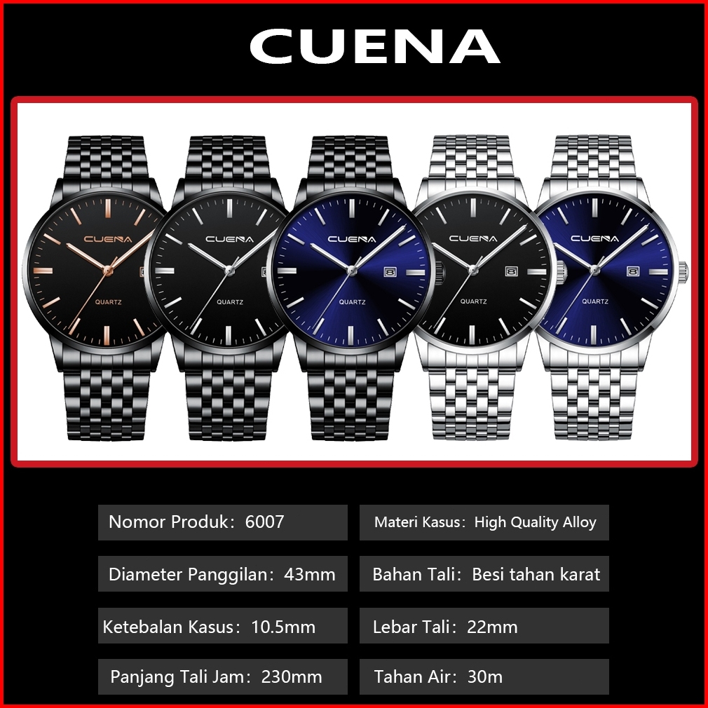 Cuena Jam Tangan Pria Analog Gelang Baja Tahan Karatkuarsa Tahan Airkalender Otomatistangan Bercahaya Jam Tangan Cowok