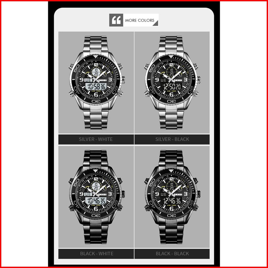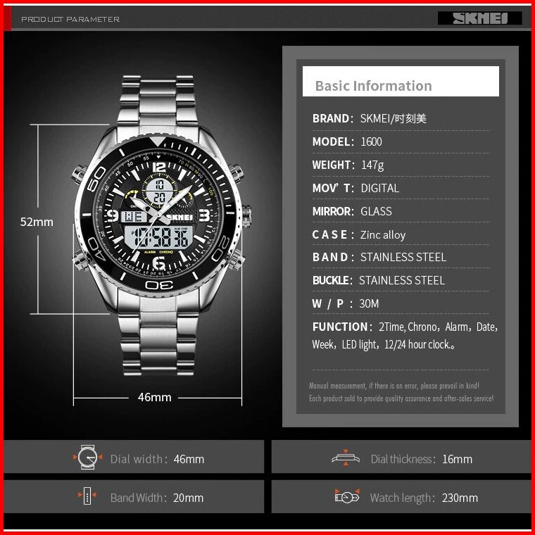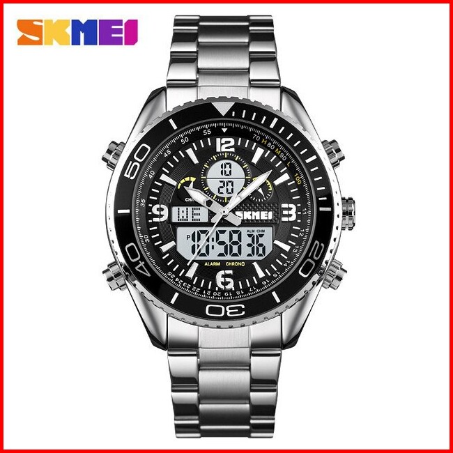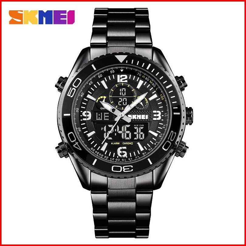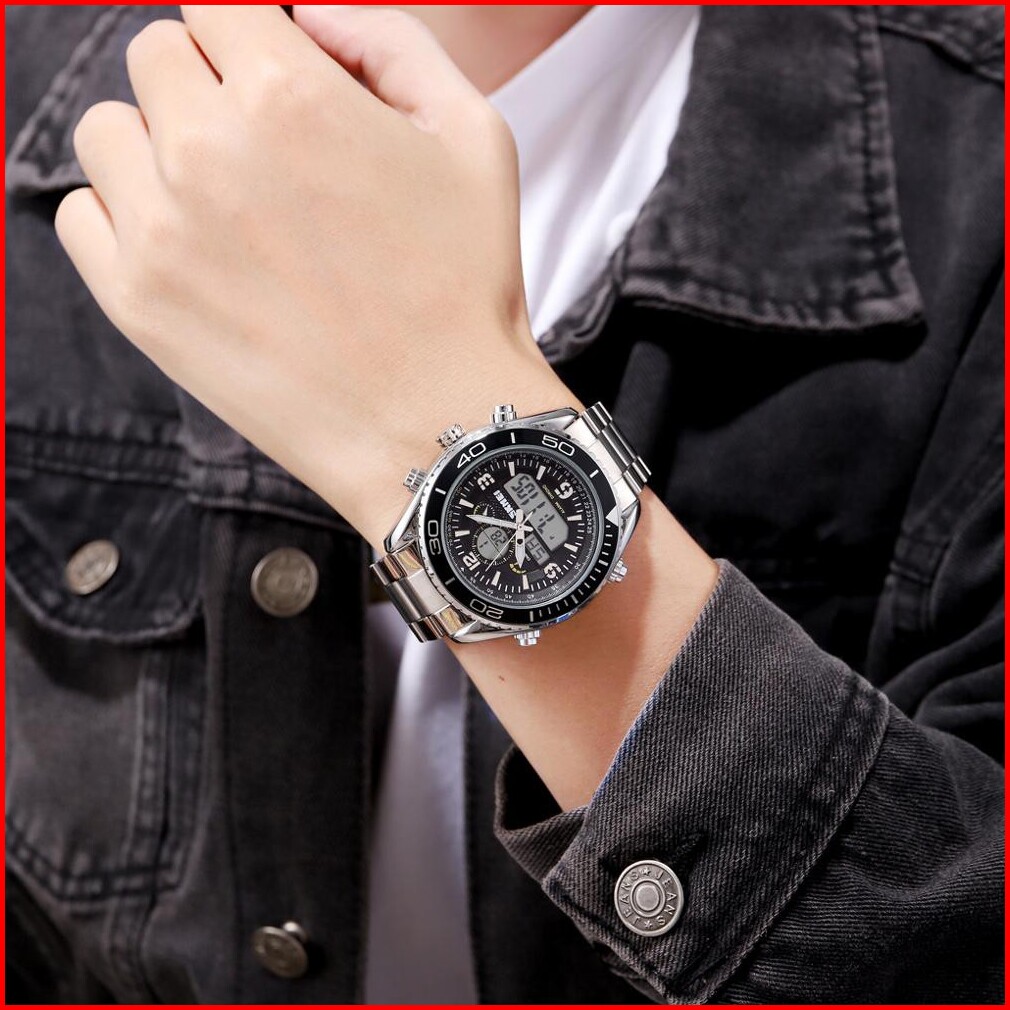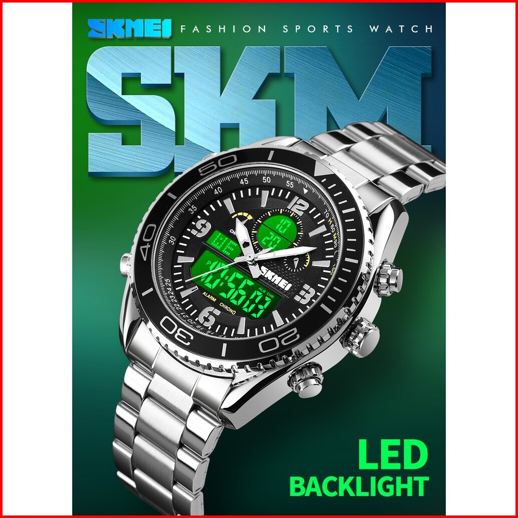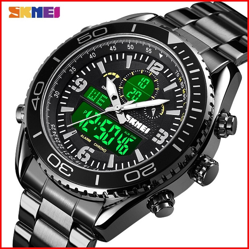 Jam Tangan Pria Skmeindonesia 1600 Stainless Steel Men Led Jam Tangan Analog Digital Skmei